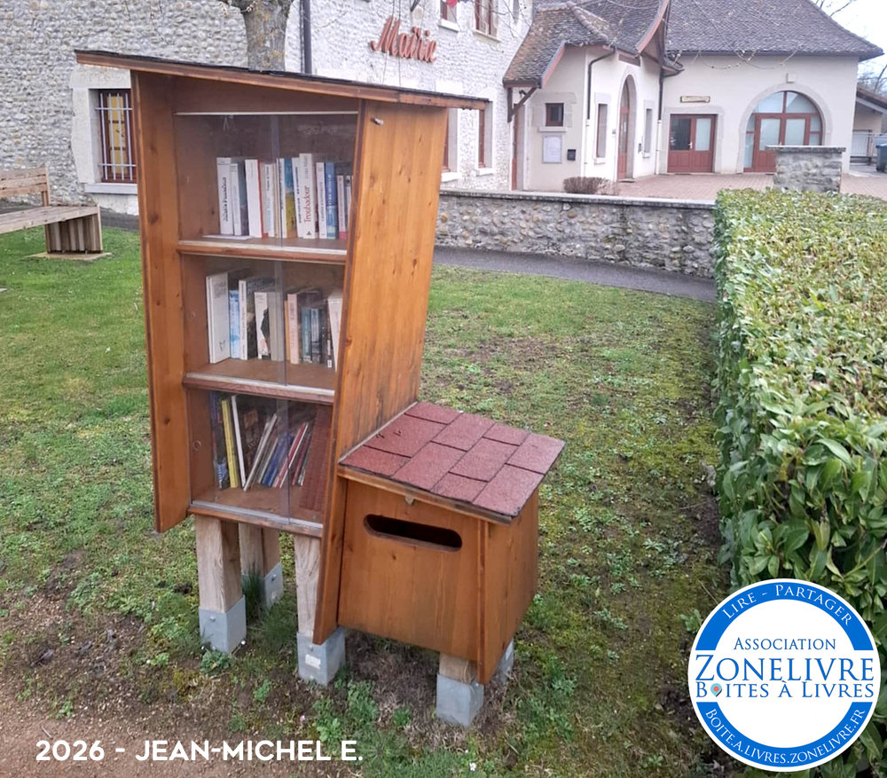 Boîte à livres située à côté du monument aux morts et de la mairie