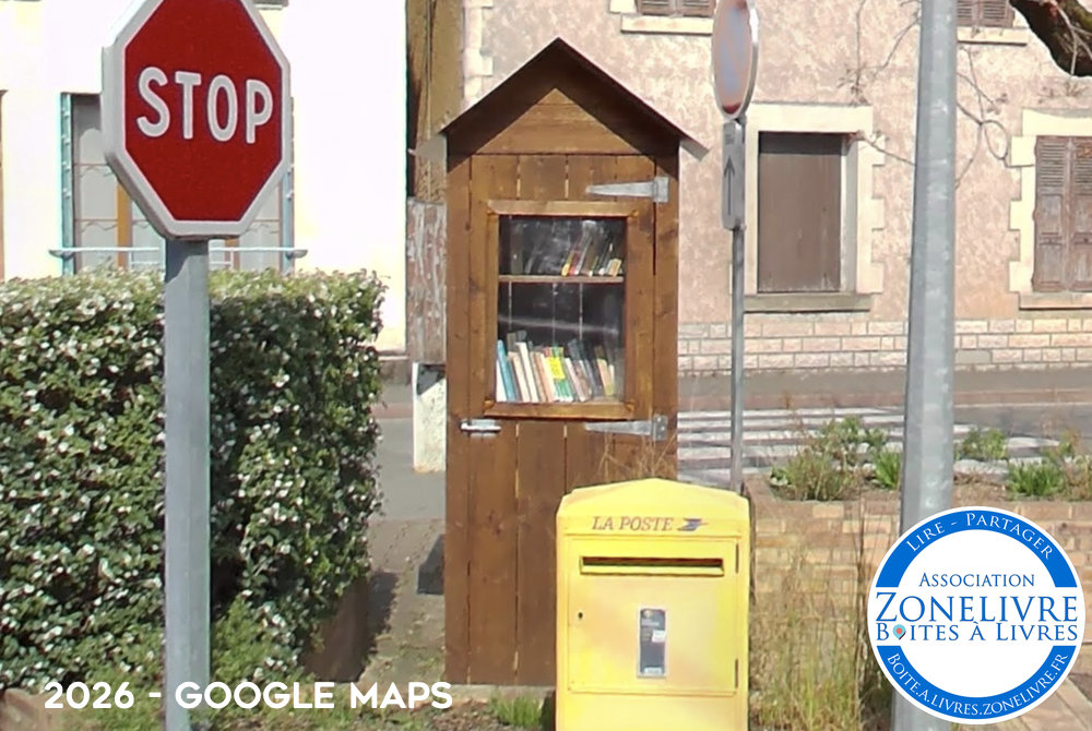Boîte à livres située sous l’abribus, à l’angle du chemin de la Promenade