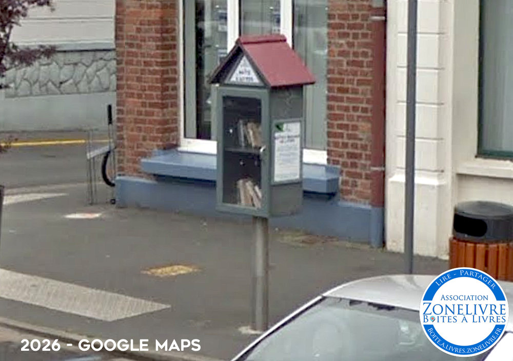 Boîte à livres située près des commerces, à l’angle de la rue Frédéric Moeneclaey