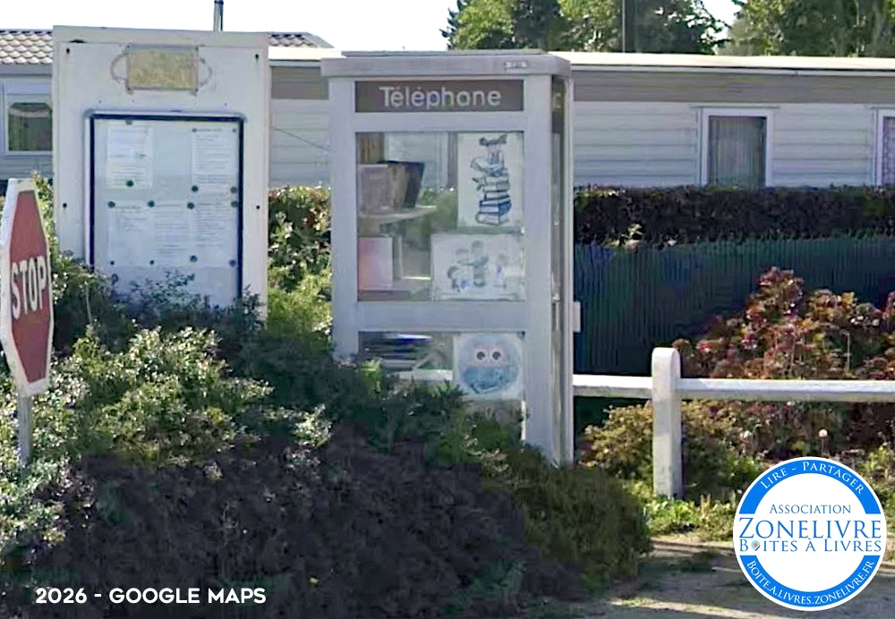 Boîte à livres située à l’entrée du camping, dans une ancienne cabine téléphonique