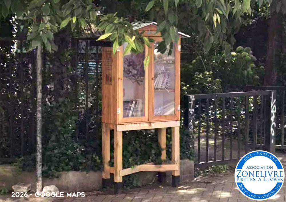 Boîte à livres située à l’entrée du square, à l’angle de la rue Jean Bart