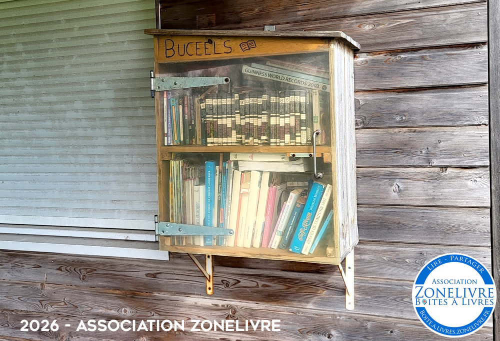 Boîtes à livres située sur le mur de la maisonnette sur l’espace vert.