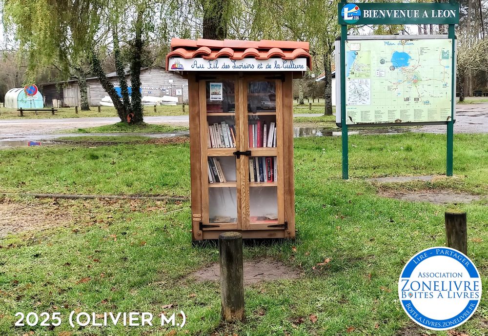 Boite à livres situées sur le parking de la plage du Lac de Léon, non loin des sanitaires.