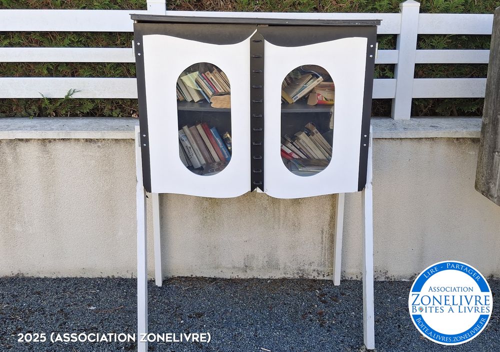 Boîte à livres situé à coté des maison, au début de l’impasse